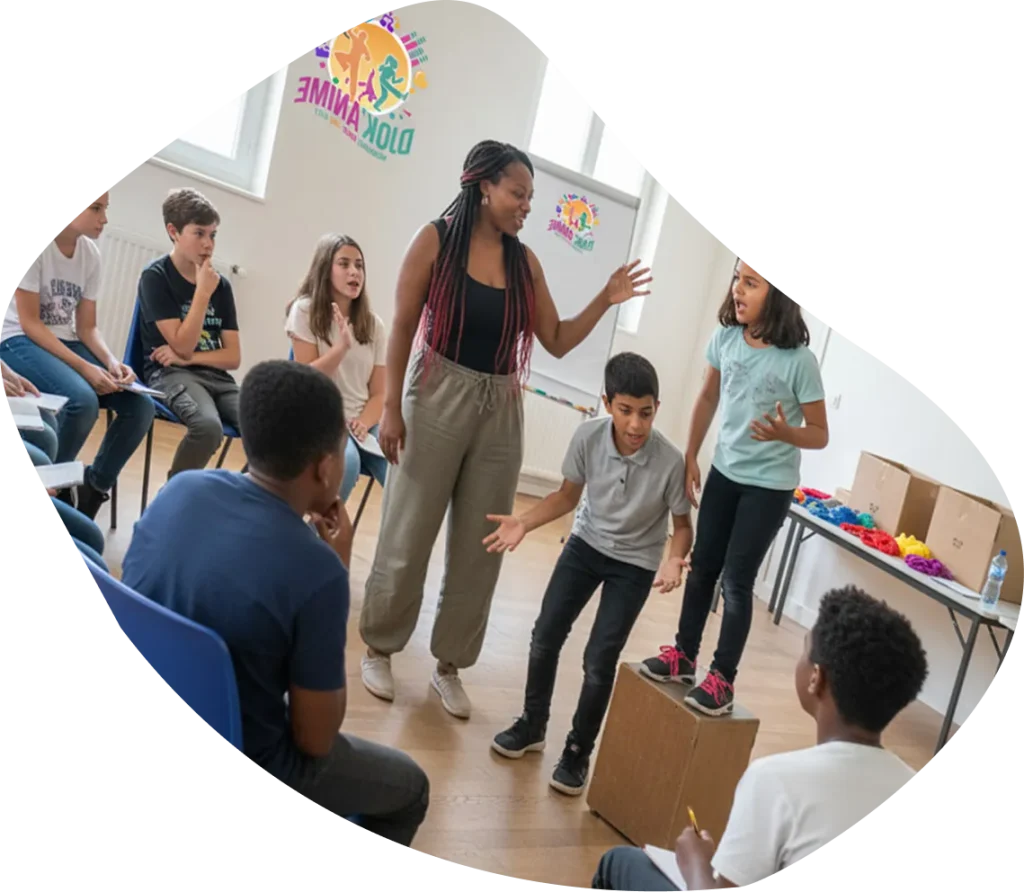 Grâce au jeu scénique et aux activités d’expression, les élèves gagnent en estime d’eux-mêmes à travers une dynamique de groupe positive.